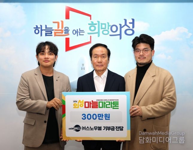 시민행정신문 강갑수 기자 | (재)의성군인재육성재단(이사장 김주수 의성군수)은 지난 10월 24일, 청년 창업기업 ㈜스노우볼(대표 이설)이 2025년 의성마늘마라톤대회 수익금 일부인 300만 원을 지역 인재육성을 위한 장학금으로 기탁했다고 밝혔다.