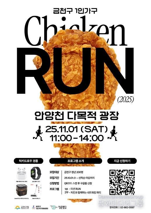 시민행정신문 이존영 기자 | 금천구는 오는 11월 1일 오전 11시, 안양천 농구장에서 청년 1인가구를 대상으로 걷기 챌린지 ‘치킨런’ 행사를 개최한다고 밝혔다.