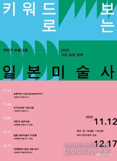제주도립미술관은 11월 12일부터 12월 17일까지 수요일 오후 2~4시 미술관 강당에서 ‘2025 시민 교양 강좌’ 하반기 프로그램 '키워드로 보는 일본미술사'를 운영한다.