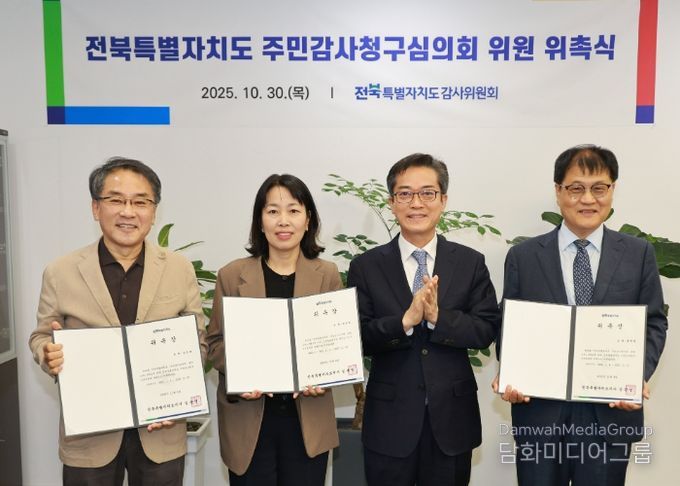 시민행정신문 강갑수 기자 | 전북특별자치도는 공정하고 투명한 행정 실현을 위해 주민감사청구심의회 민간 위원 4명을 위촉했다고 30일 밝혔다.