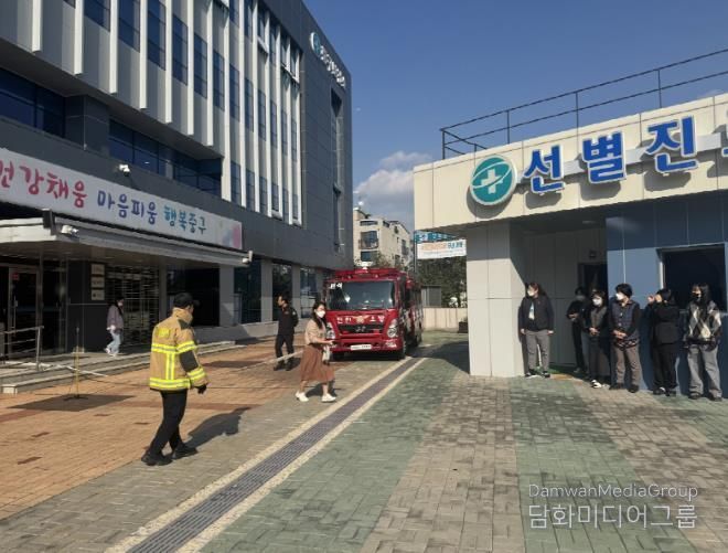 이번 훈련은 보건소 1층 현관 앞 화재 상황을 가정해 진행됐다.