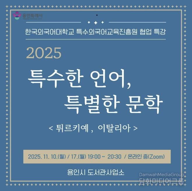 시민행정신문 강갑수 기자 | 용인특례시는 11월 10일과 17일 온라인 줌을 통해 시민을 위한 온라인 인문학 강연 ‘특수한 언어, 특별한 문학’을 운영한다고 3일 밝혔다.