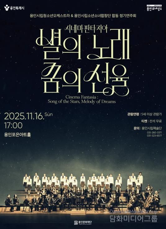 시민행정신문 기자 | (재)용인문화재단은 오는 11월 16일 용인포은아트홀에서 용인시립청소년오케스트라와 용인시립소년소녀합창단 합동 정기연주회 '시네마 판타지아 : 별의 노래, 꿈의 선율'을 개최한다.