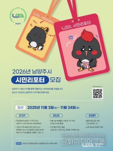 시민행정신문 강갑수 기자 | 남양주시는 2026년 시정소식지 제작에 직접 참여할 시민리포터 16명을 오는 11월 3일부터 24일까지 모집한다.
