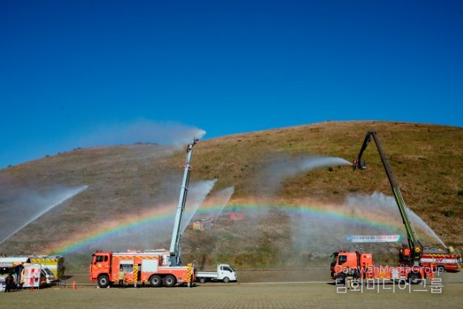 산불대응 훈련과 함께 전국의용소방대 연합회와 애월읍 주민, 새별오름 등산객을 대상으로 산불예방 수칙 안내 및 불법소각 근절 홍보 등 산불예방 캠페인도 병행했다.