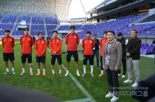 시민행정신문 장규호 기자 | 김진태 강원특별자치도지사(구단주)는 11월 3일 오후 3시, 일본 히로시마 에디온 피스 윙 스타디움을 방문해 아시아챔피언스리그 조별리그 원정경기를 앞두고 훈련 중인 강원FC 선수단을 격려하고 응원의 메시지를 전했다.
