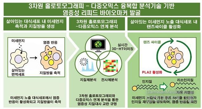 또한 연구팀은 3D 홀로토모그래피 영상기법을 통해 생세포 내 지질대사 활성을 시공간적으로 추적함으로써, 염증 반응과 지질방울 역학 변화 간의 직접적 연관성을 실험적으로 규명했다.