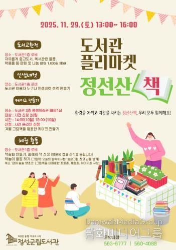 북 플리마켓은 오는 11월 29일 오전 10시부터 오후 4시까지 정선군립도서관 1층 로비에서 개최되며, 지역 주민의 자발적 참여를 통해 책을 매개로 한 교류와 나눔의 장을 마련하고 도서관을 생활 속 문화공간으로 확장하기 위해 추진된다.