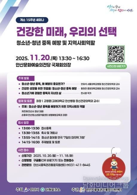 정영란 단원보건소장은 “이번 세미나가 청소년과 청년의 중독문제에 대한 사회적 관심을 높이고, 예방과 건강한 회복의 중요성을 함께 나누는 자리가 되길 기대한다”고 말했다.