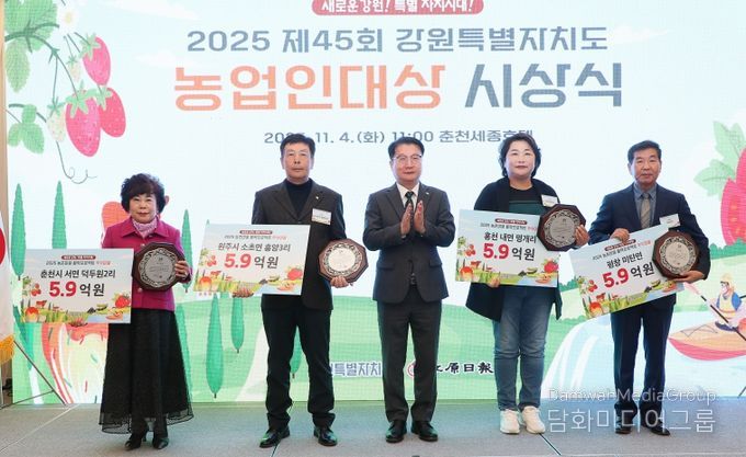 시민행정신문 강갑수 기자 | 강원특별자치도는 강원일보사와 공동으로 11월 4일 오전 11시, 춘천 세종호텔에서 '2025 제45회 강원특별자치도 농업인대상 시상식'을 개최했다.