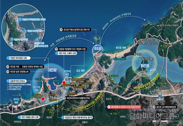 고성 대진항은 “경제도약형(1유형)”으로, 인근 화진포 리조트 개발과 연계해 수산물 가공·유통시설과 관광 인프라를 구축, 민자사업과 어촌이 상생하는 강원 북부권의 해양산업·관광 복합경제 거점으로 육성할 예정이다.
