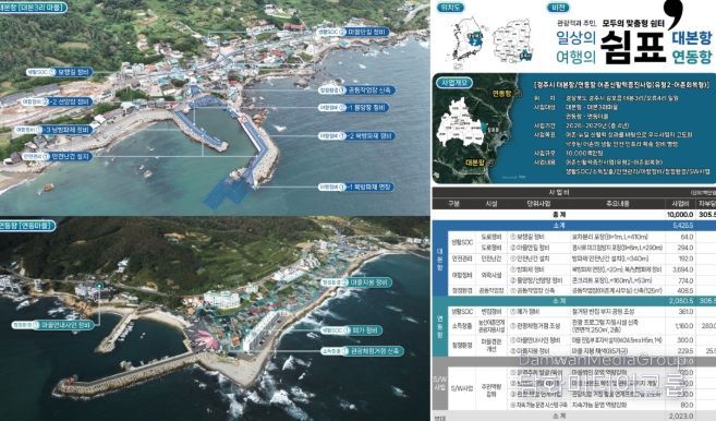 주요 사업 내용은 △대본항의 방파제 및 물양장‧선양장 정비, 도로 및 안전관리시설 개선, 공동작업장 신축 △연동항의 관광체험거점 조성, 빈집정비, 마을경관개선 등이다.