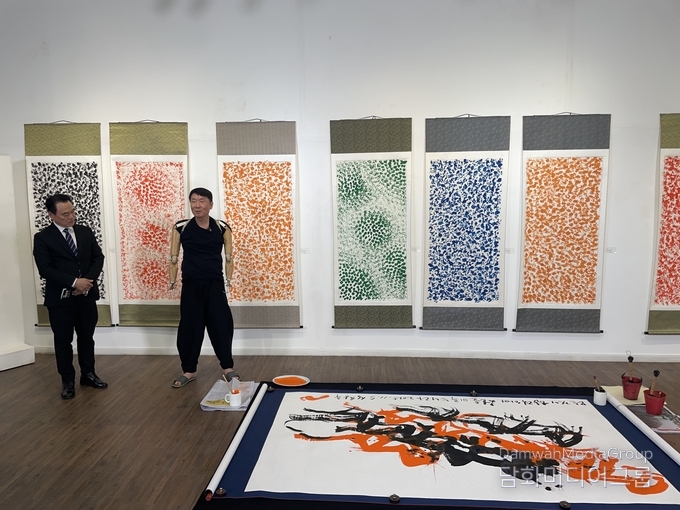 2019년 유럽 순례길에서 만난 꽃 축제는 그의 먹빛 세계에 색채의 숨결을 불어넣었고, 코로나 팬데믹 시기에는 ‘치유의 회화’로 세상에 희망을 줄 수 있는 작품을 했다. 그의 크로키 퍼포먼스는 2018 평창·2014 소치 동계패럴림픽 폐막식, 2024 한-아프리카 정상회의 청와대 오찬 행사 등에서 선보이며 예술의 회복력과 인간 정신의 찬가를 증명했다.