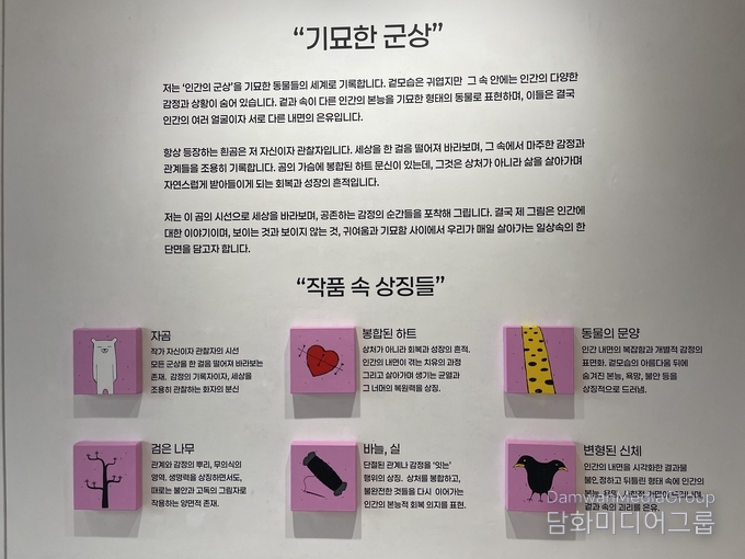 시민행정신문 전득준 기자 | 겉과 속이 다른 인간의 본능, 즉 ‘인간의 군상’을 기묘한 형태의 동물로 표현한 작품들로 주목을 받고 있는 장승필 개인전 《기묘한 군상》전시가 서울 종로구 인사동에 위치한 갤러리은(Gallery Eun)에서 11월 10일까지 열리고 있다.