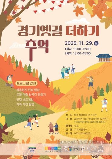 시민행정신문 기자 | 경기문화재단 경기역사문화유산원는 오는 11월 29일 토요일, 의주길에 위치한 파주 혜음원지 일대에서 초등학생 이상 자녀를 둔 가족을 대상으로 하는 역사 체험 프로그램 ‘경기옛길 더하기 추억’을 개최한다고 밝혔다.