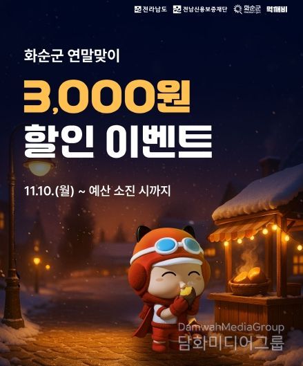 시민행정신문 강갑수 기자 | 화순군은 공공배달앱 ‘먹깨비’ 이용 활성화와 지역 내 소비 진작을 위해 11월 10일부터 12월 31일까지 연말맞이 특별할인이벤트를 진행한다고 밝혔다.