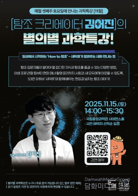 국립중앙과학관 권석민 관장은 “이번 강연은 과학을 교과서 너머의 세계로 확장하는 흥미로운 기회가 될 것”이라며 “학생들에게는 주변 생태계를 감각적으로 경험하는 통로, 학부모에게는 일상에서 자연을 함께 관찰하며 소통할 수 있는 기회가 될 것”이라고 말했다.
