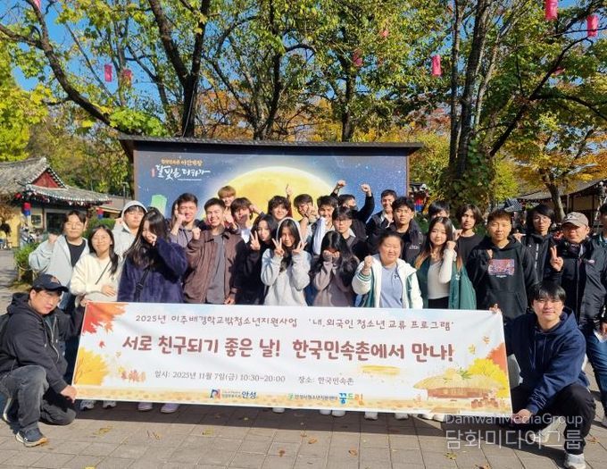 시민행정신문 강갑수 기자 | 안성시학교밖청소년지원센터는 2025년 11월 7일 경기도 용인시 한국민속촌에서 이주배경학교밖청소년과 내국인학교밖청소년이 함께하는 ‘한국문화체험 및 내‧외국인청소년 교류활동’을 진행했다.