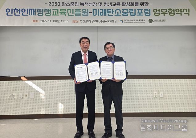 시민행정신문 강갑수 기자 | 2025년 11월 10일, 인천인재평생교육진흥원과 미래탄소중립포럼이 탄소중립 시민교육과 평생교육 활성화를 위한 업무협약(MOU)을 체결했다.