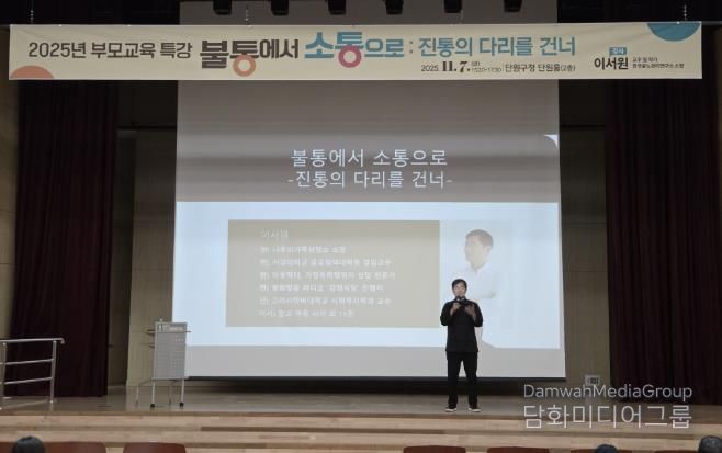 시민행정신문 강갑수 기자 | 안산시는 단원구청 단원홀에서 ‘불통에서 소통으로: 진통의 다리를 건너’를 주제로 부모교육 특강을 진행했다고 11일 밝혔다.