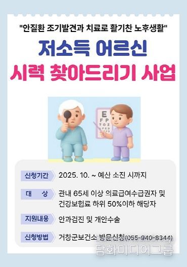 이정헌 거창군보건소장은 “이번 사업은 고향사랑기부제를 통해 경제적 이유로 치료를 미루었던 어르신들이 다시 세상을 또렷이 볼 수 있도록 돕는 뜻깊은 일”이라며 “앞으로도 군민의 건강한 노후를 위해 다양한 지원을 이어가겠다”고 말했다.