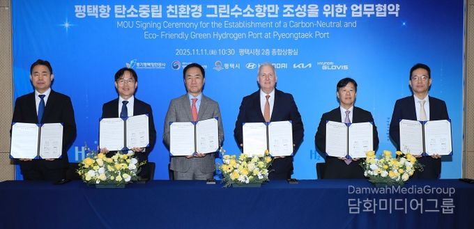 이날 협약식에서는 평택시, 평택지방해양수산청, 경기평택항만공사, 현대차, 기아, 현대글로비스 등 총 6개 기관이 참여해 수소 항만 조성에 공동으로 협력하기로 했다.