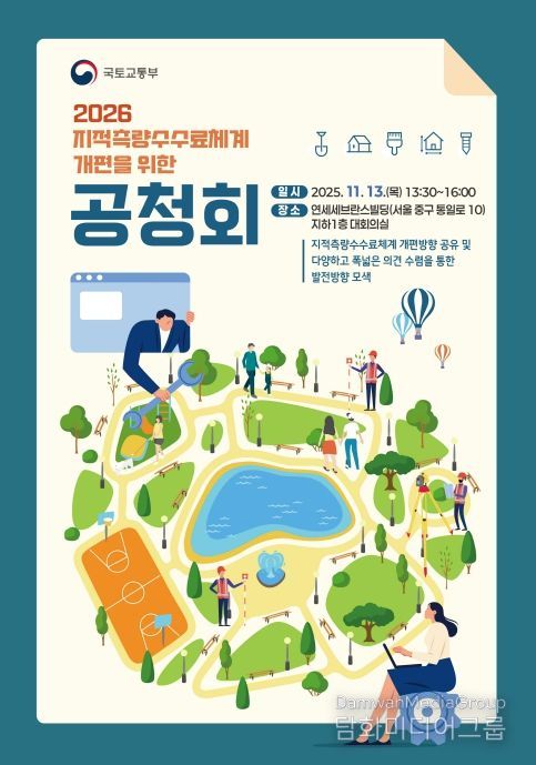 시민행정신문 강갑수 기자 | 국토교통부는 국민이 쉽게 이해하고 신뢰할 수 있는 지적측량 수수료 체계를 마련하고자, 11월 13일 오후 서울에서 지적측량수수료 체계 개선 공청회를 개최한다.