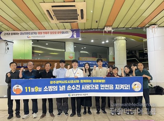 시민행정신문 강갑수 기자 | 광주도시공사는 지난 7일 ‘소방의 날’을 맞아, 공사가 관리·운영 중인 충금 지하도상가 일원에서 화재 예방 캠페인을 실시했다.