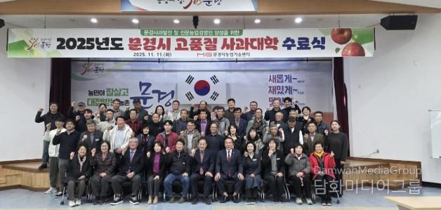 시민행정신문 강갑수 기자 | 문경시농업기술센터는 11월 11일 농업기술센터 대강당에서 2025년도 문경시 고품질 사과대학 수료식을 열고, 전체 교육 시간의 80% 이상을 출석한 교육생 123명 중 87명이 수료의 영예를 안았다.