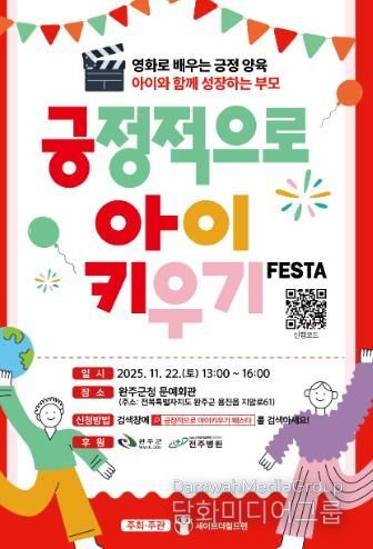 시민행정신문 강갑수 기자 | 완주군이 긍정적인 양육 문화의 확산을 위해 세이브더칠드런과 함께 ‘긍정적으로 아이 키우기 페스타’를 오는 22일 완주군청 문예회관에서 개최한다.