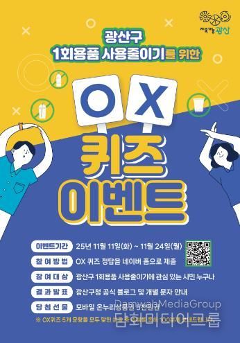 시민행정신문 강갑수 기자 | 광주 광산구가 일상에서 일회용품 사용을 줄이기 위한 시민들의 인식 개선과 친환경 실천 확산을 위해 ‘일회용품 사용 줄이기 OX 퀴즈 행사’를 진행한다.