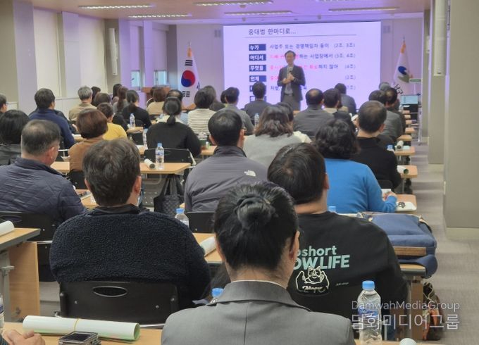 시민행정신문 강갑수 기자 | 대구 남구는 최근 강화된 안전보건 정책에 발맞춰 관내 발주공사현장, 도급·용역·위탁사업 수급업체 사업주 및 관계자 60여 명을 대상으로 지난 11월 6일 중대재해예방 교육을 실시했다고 밝혔다.