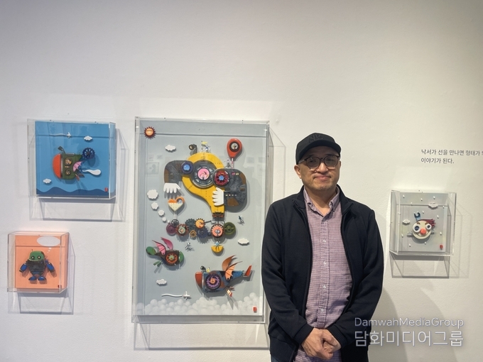 나무판에 그림을 그리고 정교하게 재단한 후 사포질로 고운 면을 만들고 금속처럼 재현하거나 화사한 색으로 채색한 그의 작품은 현실과 상상이 조화롭게 공존하는 세계를 만들어낸다