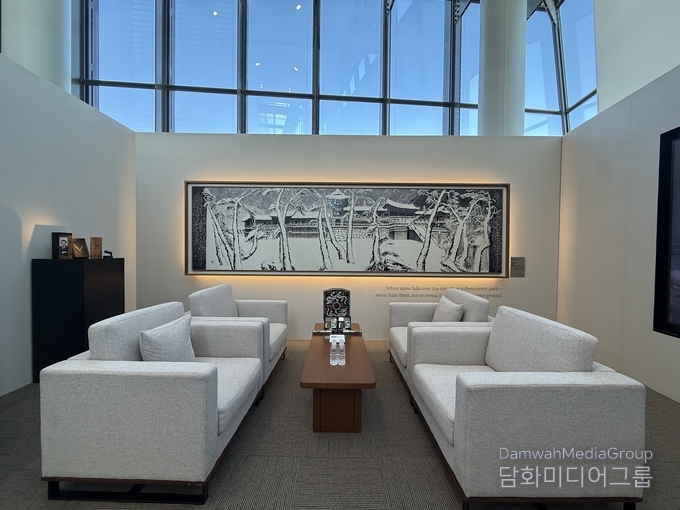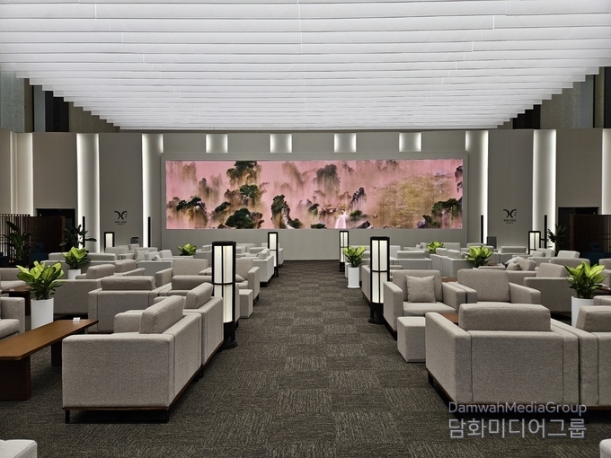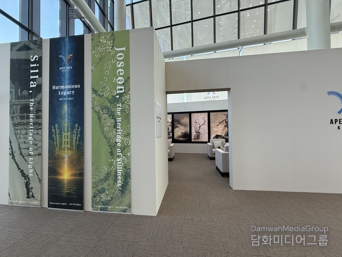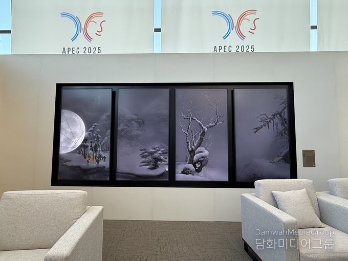 HICO 3층 정상회의장 라운지에는 가로 15m, 세로 4m 규모의 대형 미디어아트 월이 설치되어 APEC 21개국 정상을 맞이했다. 이이남 작가의 대표작 〈몽유도원도〉, 〈금강 내산〉, 〈묵죽도〉가 전통 회화의 미학과 AI 영상 기술을 결합해 ‘협력’과 ‘명상’의 미학을 시각화했다.