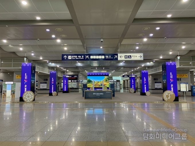APEC의 관문인 경주 KTX 역사에는 AI 기반 미디어아트 〈천년의 문〉이 설치되었다.