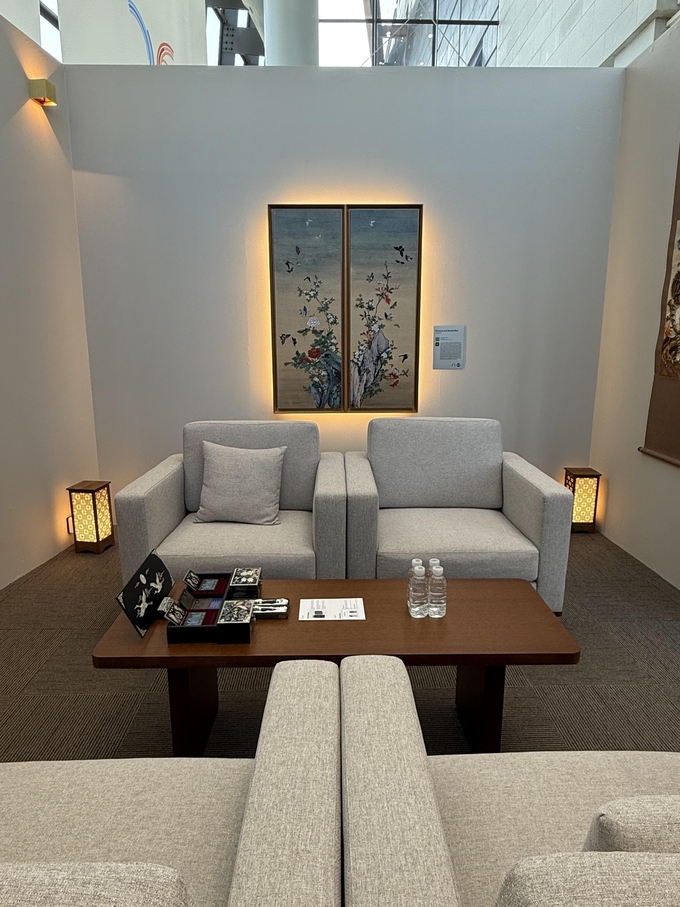 스틸아트로 재현한 조희룡의 〈홍백매도 병풍〉, 권정순의 〈화접도〉, 박필순의 〈호작도〉 자수작품이 함께 전시되어 절제와 여백의 미학을 현대적으로 해석했다.