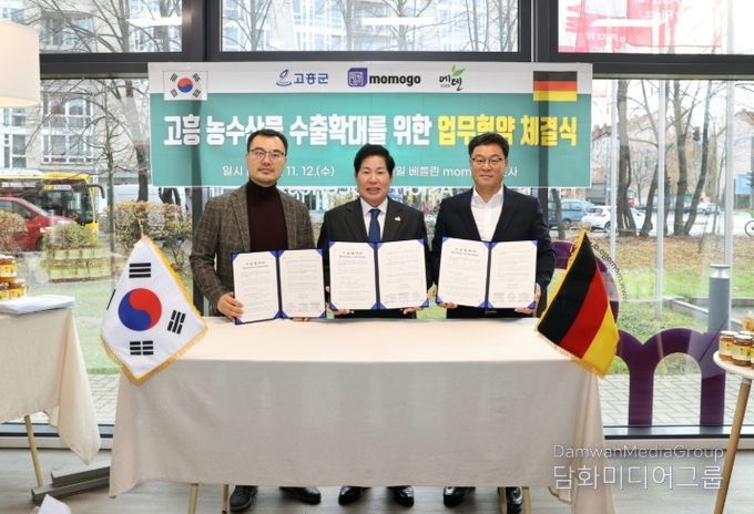시민행정신문 이세훈 기자 | 전라남도 고흥군은 지난 11월 12일 독일 베를린에서 아시아 식재료 전문 유통업체인 모모고(momogo, 대표 이민철)와 500만 달러 규모의 농수산물 수출협약(MOU)을 체결했다.