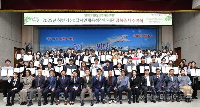 시민행정신문 강갑수 기자 | 대구 달서구는 (재)달서인재육성장학재단이 구청 대강당에서 2025년 하반기 장학금 수여식을 개최했다고 13일 밝혔다.