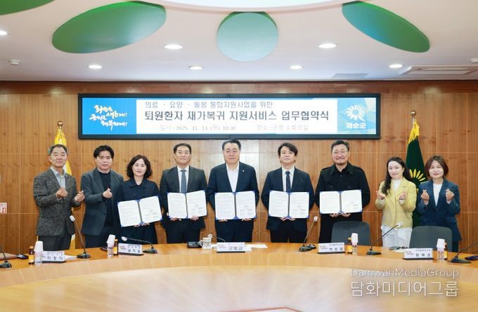 시민행정신문 강갑수 기자 | 전남 화순군은 내년 3월부터 본격 시행되는 의료·요양·돌봄 통합지원사업에 선제적으로 대응하기 위해 군청 소회의실에서 ‘퇴원환자 재가복귀 지원서비스’ 업무 협약을 체결했다고 13일 밝혔다.
