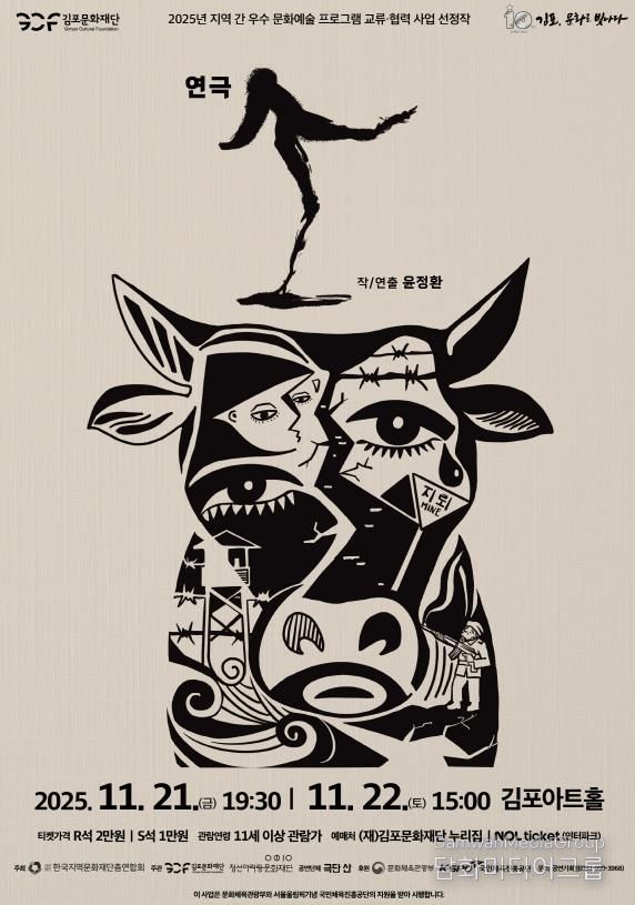 시민행정신문 기자 | (재)김포문화재단은 오는 11월 21일부터 22일까지 이틀동안 김포아트홀에서 연극 '소' 공연을 개최한다고 밝혔다.