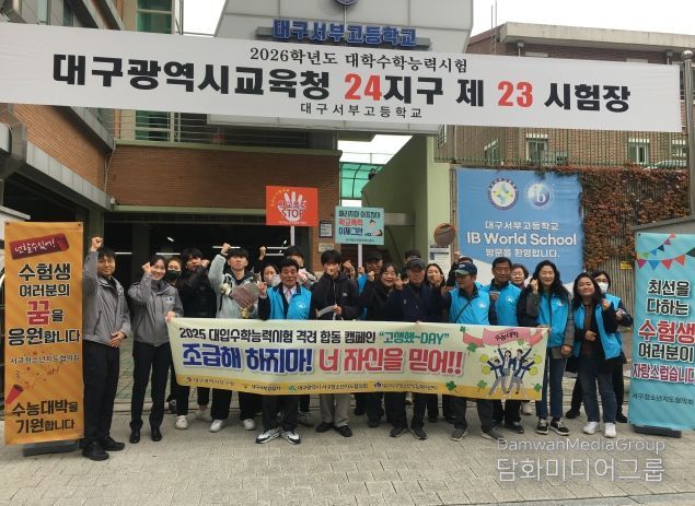 시민행정신문 강갑수 기자 | 대구 서구 청소년지도협의회(회장 황만태)는 지난 12일, 서부고등학교 정문에서 학생들의 수능 예비 소집일 시간에 맞춰 수험생 응원 및 선도·보호 합동 캠페인을 실시했다.