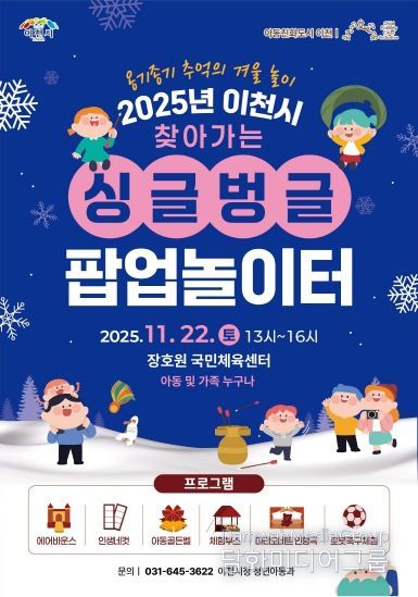 시민행정신문 강갑수 기자 | 이천시는 아동친화도시 놀이문화 확산과 아동의 놀권리 보장을 위해 『찾아가는 싱글벙글 팝업 놀이터‘겨울놀이’』행사를 오는 11월 22일 장호원 국민체육센터에서 개최한다고 밝혔다.