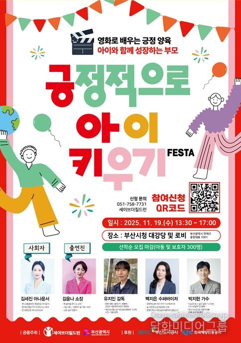 시민행정신문 기자 | 부산시와 세이브더칠드런은 오는 11월 19일 오후 1시 30분, 시청 대강당과 로비에서 '제7회 부산광역시 아동의 날 기념식'과 '긍정적으로 아이 키우기 페스타'를 개최한다고 밝혔다.