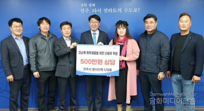 시민행정신문 강갑수 기자 | 전주지역 봉사단체인 ‘디딤돌’(회장 박지윤)은 17일 전주시장실을 찾아 지역 저소득 취약계층 20세대에 전달할 예정인 500만 원 상당의 등유 쿠폰 사용권을 기탁했다.