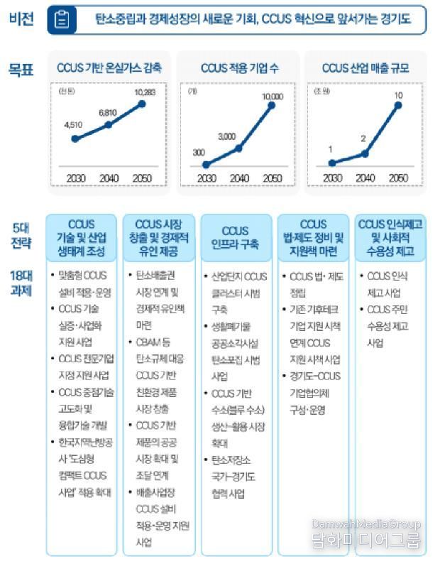 경기연구원은 최근 ‘경기도의 탄소중립 달성을 위한 CCUS 정책 육성 방안’ 보고서를 발간하고, 경기도형 CCUS 육성 로드맵과 5대 전략, 18개 세부과제를 제시했다.