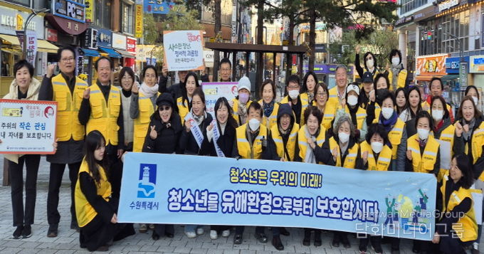 시민행정신문 강갑수 기자 | 수원시 영통구는 지난 17일, 영통역 인근 청소년 유해업소 밀집지역에서 민·관 합동 청소년 유해환경 지도단속 및 선도 캠페인을 실시했다.