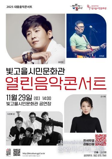 시민행정신문 기자 | 광주문화재단은 오는 11월 29일 빛고을시민문화관 공연장에서 ‘2025 대중음악콘서트(2회차)’를 전석 무료로 개최한다고 밝혔다. 이번 공연은 시민 문화복지 실현과 문화 접근성 확대를 위한 열린 음악회로, 지역민 누구나 부담 없이 참여할 수 있는 공공기획 공연이다.