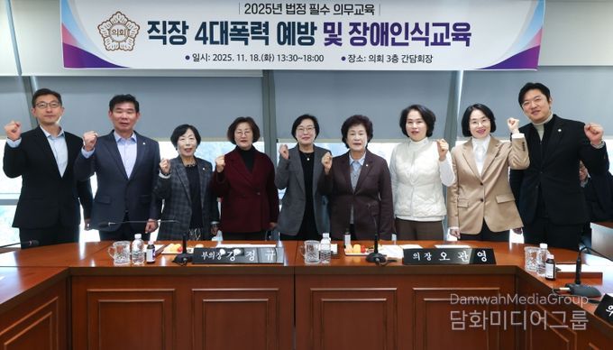 오관영 의장은 “이번 4대 폭력 예방 교육과 장애인 인식 개선 교육이 의회 구성원들이 보다 성숙한 조직 문화를 만들어가는 데 중요한 계기가 될 것”이라며 “서로를 존중하고 차별과 폭력이 없는 건강한 직장 문화가 더욱 확산되길 바란다”고 말했다.