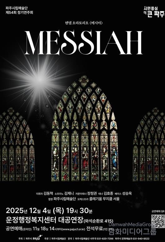 시민행정신문 기자 | 파주시는 오는 12월 4일 19시 30분, 운정행복센터 대공연장에서 시립예술단 제54회 정기연주회 ‘헨델 오라토리오 '메시아'’를 선보인다고 밝혔다.