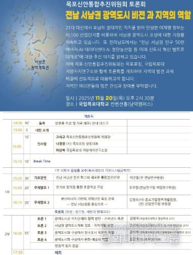고석규 위원장은 “서남권의 큰 미래 구상 속에서 목포와 신안이 어떤 비전과 협력 모델을 갖춰야 하는지 함께 고민하는 의미 있는 자리”라며 “지역민의 관심과 참여가 서남권 공동발전의 중요한 출발점이 될 것”이라고 강조했다.